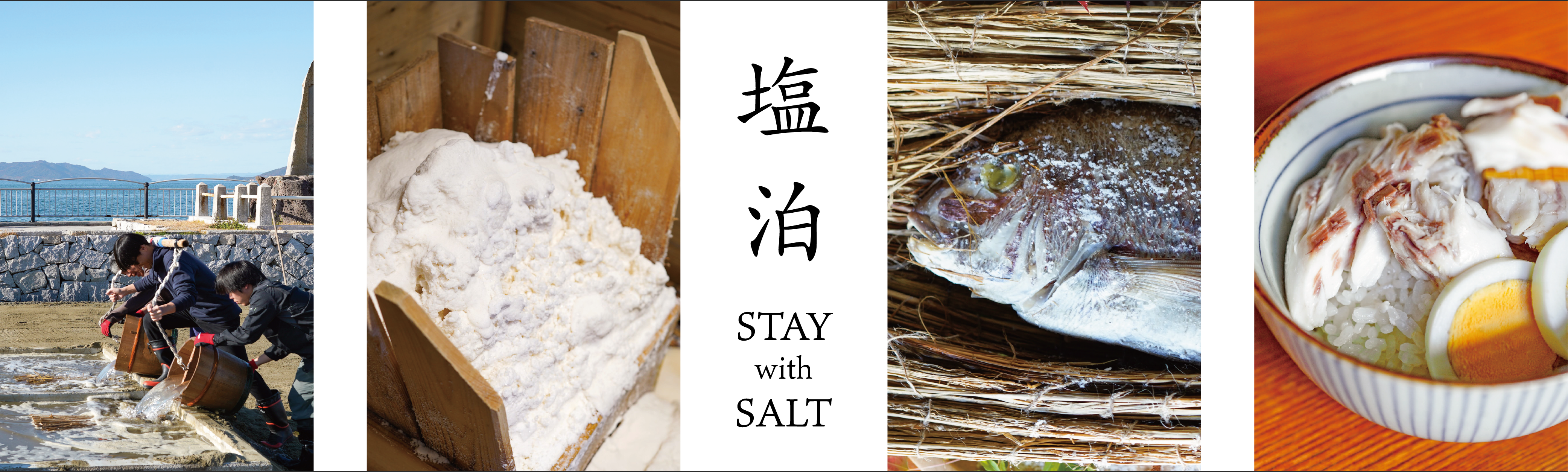 Utazu was once a town that prospered through salt production. This “Stay with Salt” plan allows you to experience the traditional salt-making method known as “Irihama-shiki salt fields,” which has continued for about 300 years, at a restored salt field. You can then savor the salt actually produced there alongside Seto Inland Sea sea-bream while staying in a house in the old town.